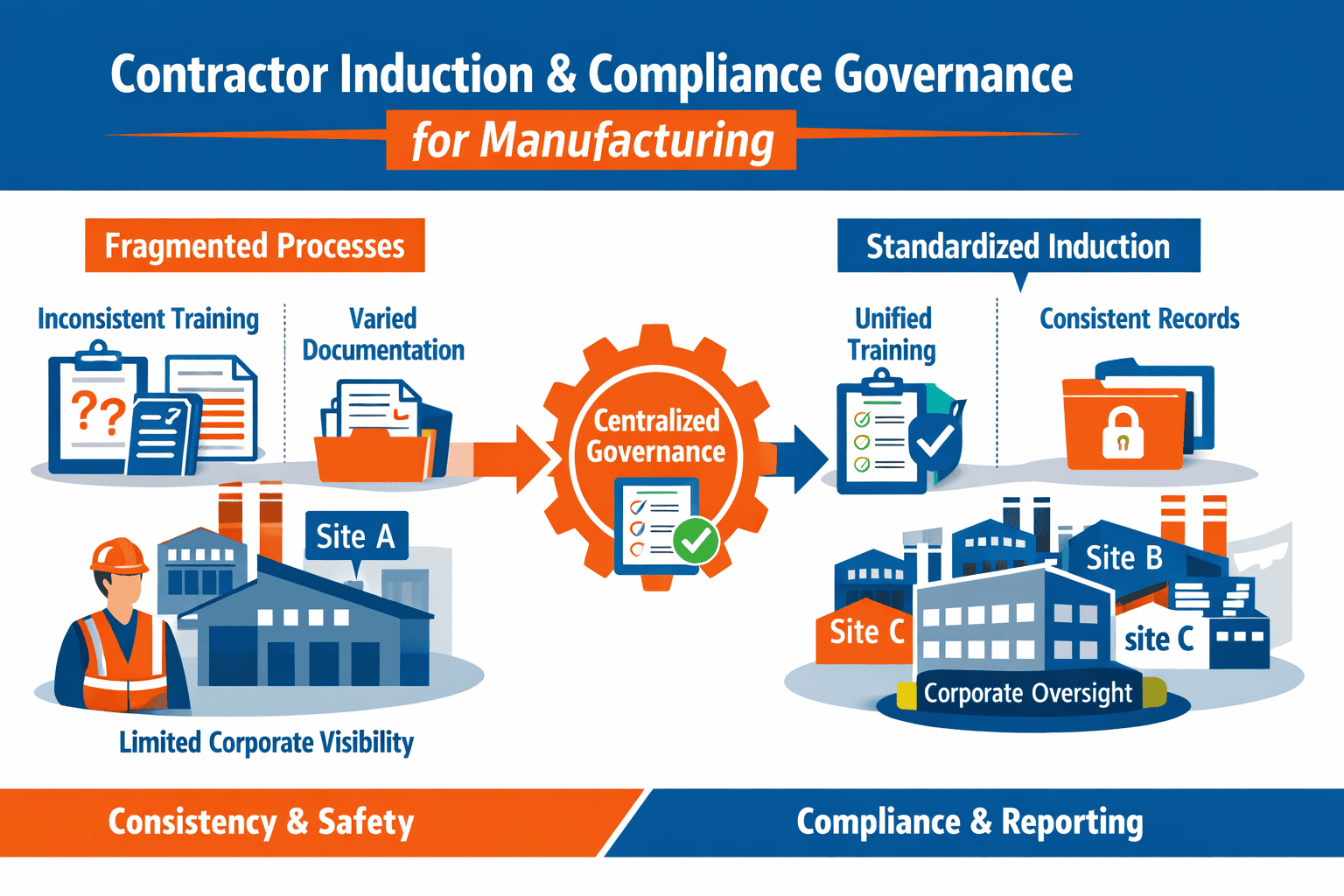 Manufacturing organisations frequently operate across multiple facilities, each with unique operational pressures, contractor activity, and local management structures. Over time, contractor induction processes evolve independently at each site.