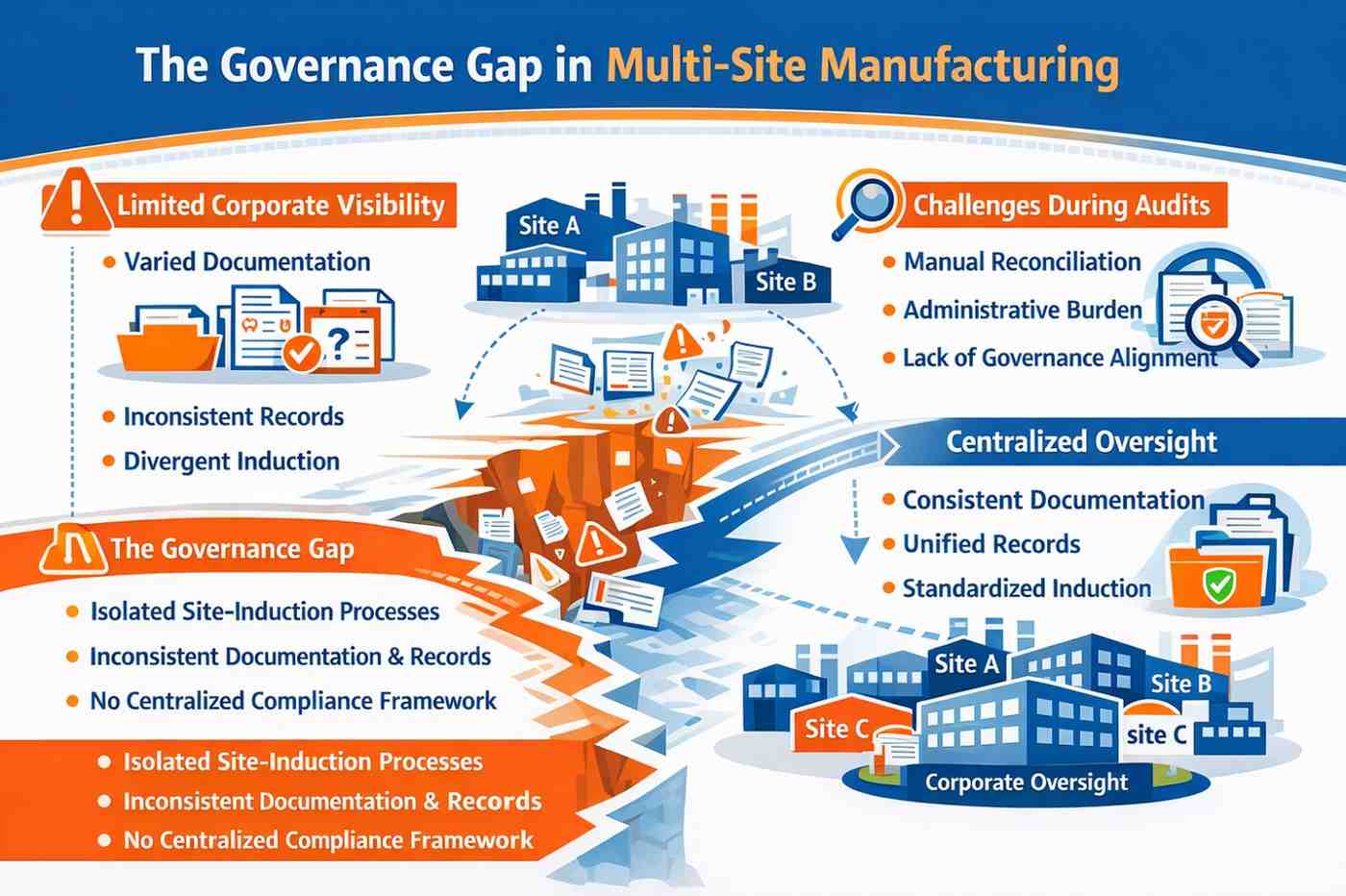 While this local flexibility can support day-to-day operations, it often results in variations in documentation standards, record retention practices, and induction requirements. From a corporate perspective, this creates limited visibility into how contractor compliance is managed across the broader manufacturing network.